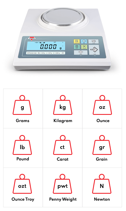 The AD Series Parts Counting Mode provides the user with an easy to use, yet comprehensive, capability for counting parts based upon weight. The counting feature is designed in the form of a short wizard which leads the user step by step through the procedure. Repetitive counting using the same average piece weight is especially simple and fast. The user is offered a choice of sample sizes ranging from 1 to 100 when establishing a new average piece weight. The feature is very user-friendly with the counting process usually taking only a few seconds to complete.